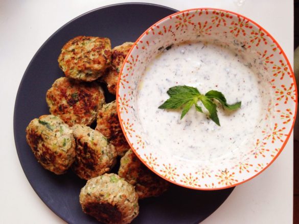 Ein sehr aromatisches Gericht aus dem Kochbuch „Jerusalem“ von Yotam Ottolenghi und Sami Tamimi: zusammen mit einer würzigen Joghurtsoße bringen diese Puten-Zucchini-Bällchen nahöstliches Flair auf den heimischen Esstisch. Dazu gibts meist einen Salat und Fladenbrot. Unten stehende Menge mache ich immer für 2 Personen, sollte mal was übrig bleiben, kann man die Bällchen wunderbar am nächsten Tag auch kalt essen!
